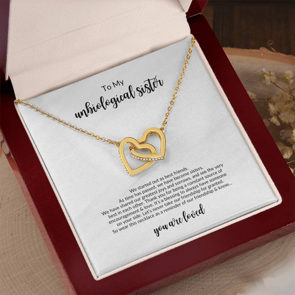 To My Unbiological Sister | We Started As Best Friends - Interlocking Hearts Necklace